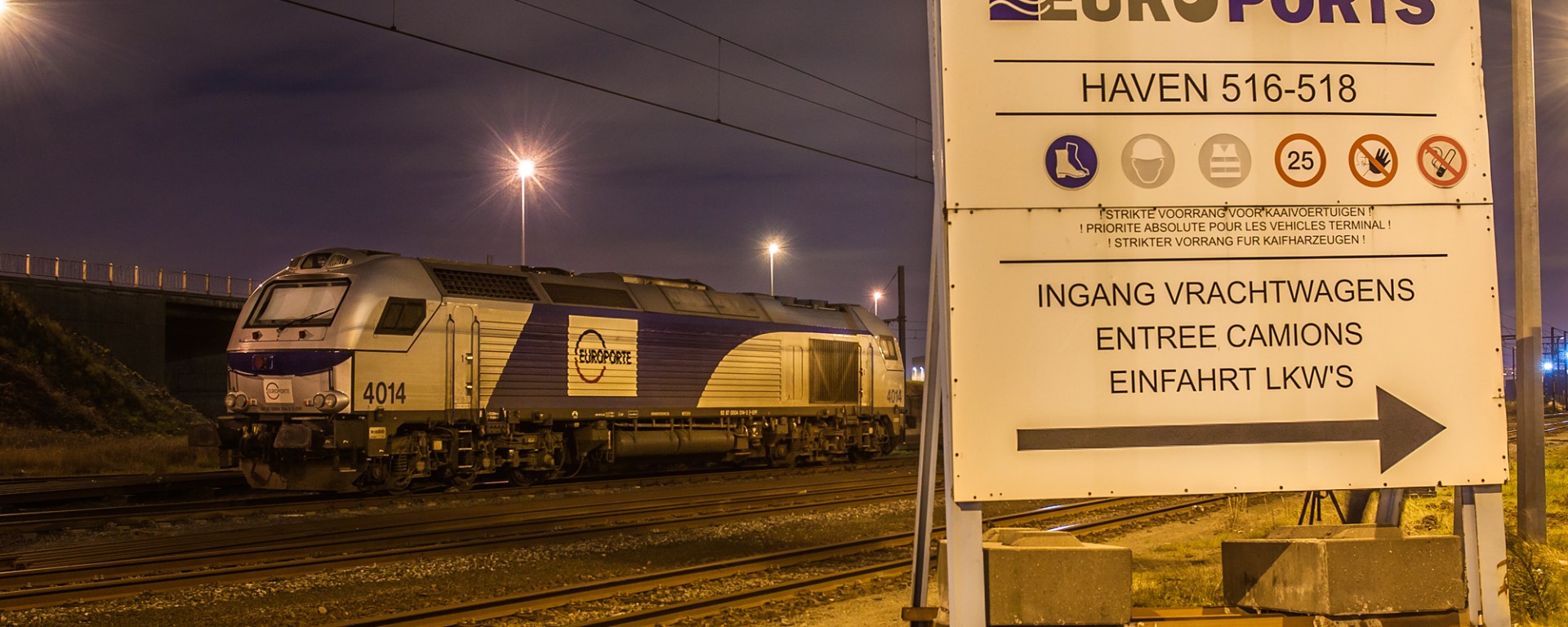 A nightly photoshoot in the port of Antwerp brought us to the Lillo section of the port. B-Logistics was pushing a train in place at Euroports, while this Europorte locomotive was waiting for its next service. It has arrived here a few hours ago with a sugar train from France.