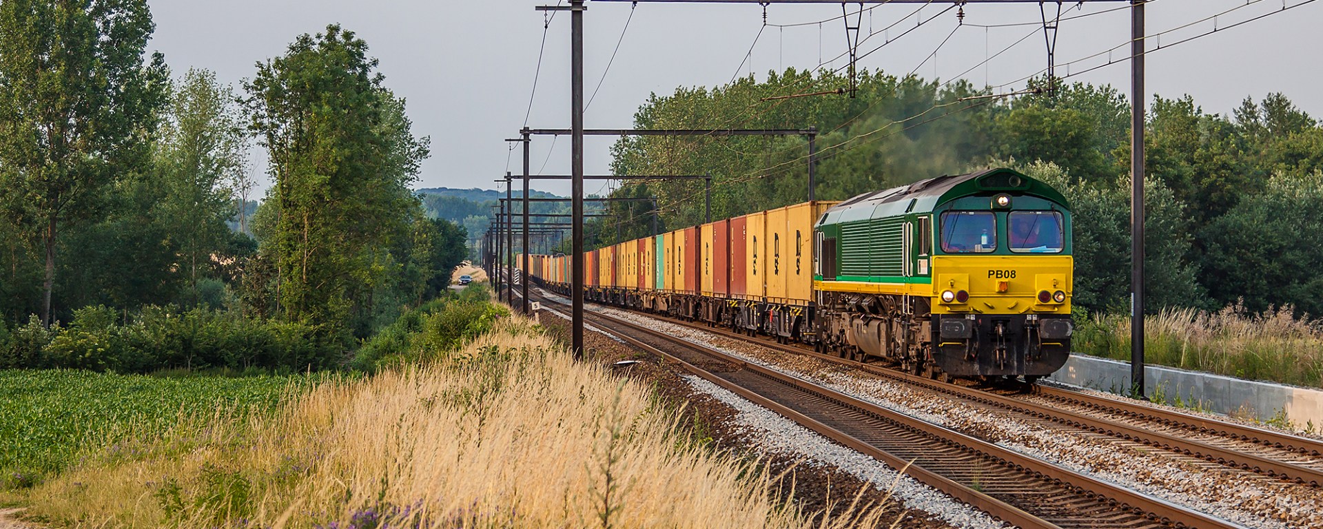 The quest for some freight trains brought me a bit further south, in Alt-Hoeselt. I parked the car close to the, by insiders well-known, curve and started walking. I didn’t quite find what I was looking for, so this Crossrail train became a “panic” shot. On the photo you can judge the gradient, and thus understand why the loco is spitting out a lot of diesel fumes. You can also see my car in the back, and appreciate the massive *cough* distance walked to get here.