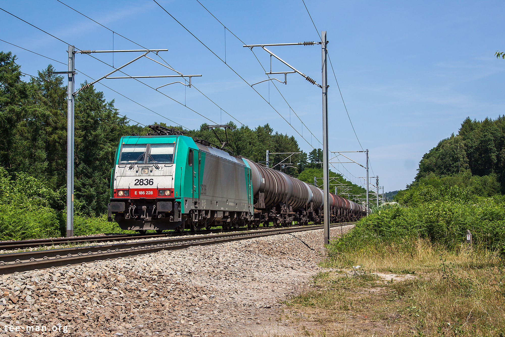 The forest in Plombières is a nice place on warm days. Abundant vegetation hid all trains from sight, unfortunately. I heard one train stop though. Strange, but that gave me an opportunity to go back to a place where the path runs next to the tracks. After a while the train continued, reason of the stop unknown. But I got my photo :).