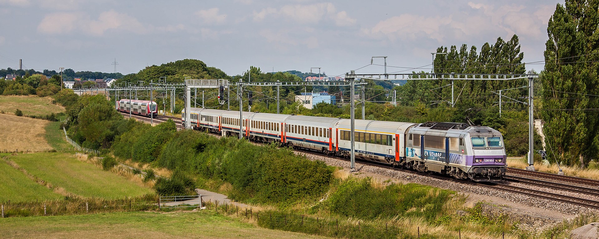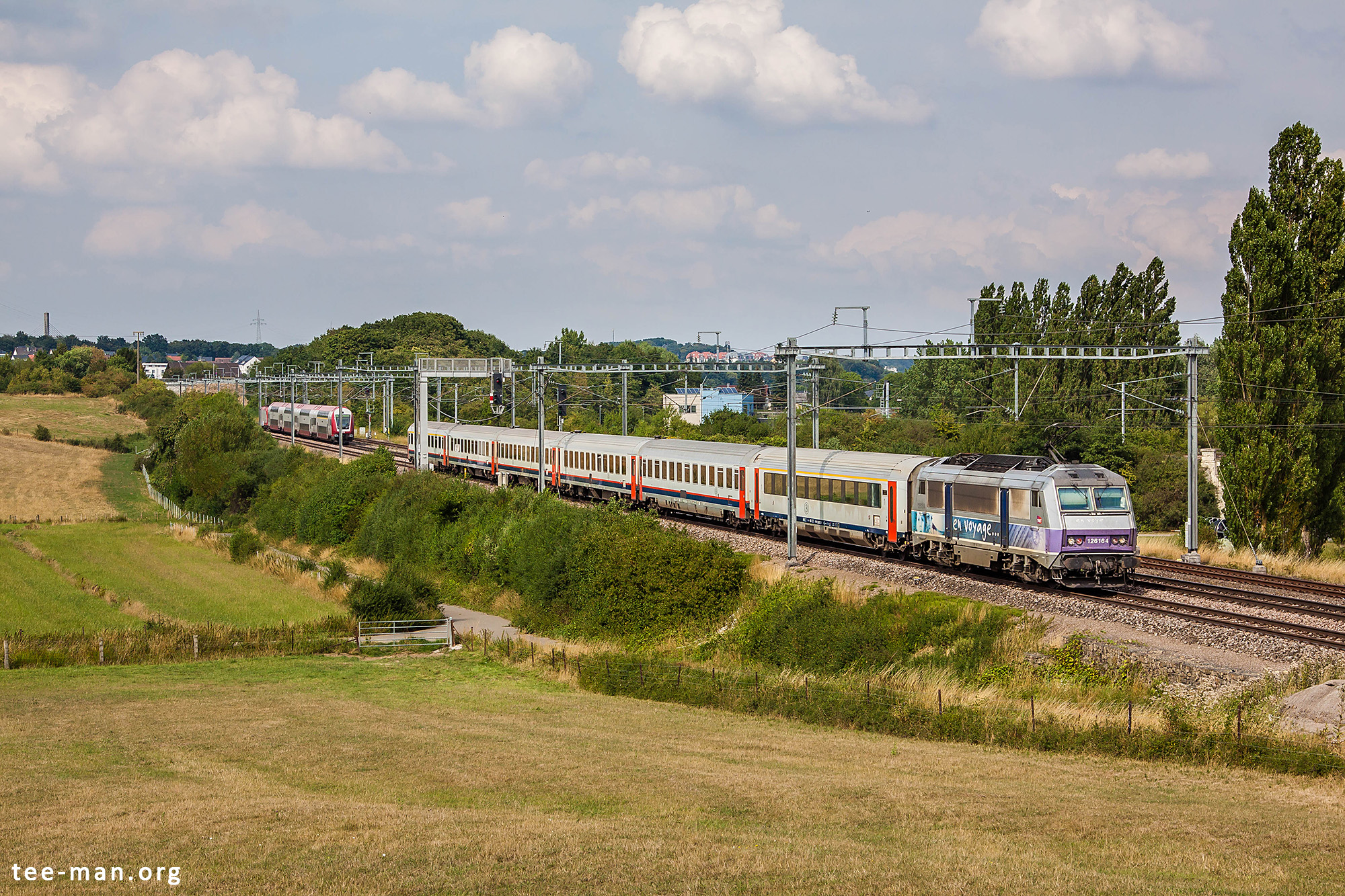 Still last summer… one of very few sybic engines carrying the En Voyage livery hauls Eurocity n° 97 from Brussels to Basel.