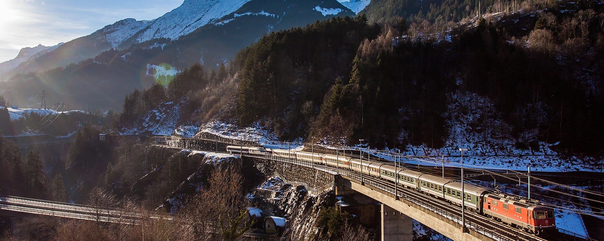Time passed quickly, and before we knew it the sun was hiding behind the high peaks of the Alps. On of the spots where we would have some decent light left, was the viaduct at Intschi. From this viewpoint, you mostly see photos from earlier during the day. I think it looked good at this time also.