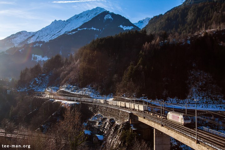 We were especially happy when this train passed us: the Railcare train from Chiasso to Hunzenschwil, hauled by a Re465 locomotive rented from BLS.