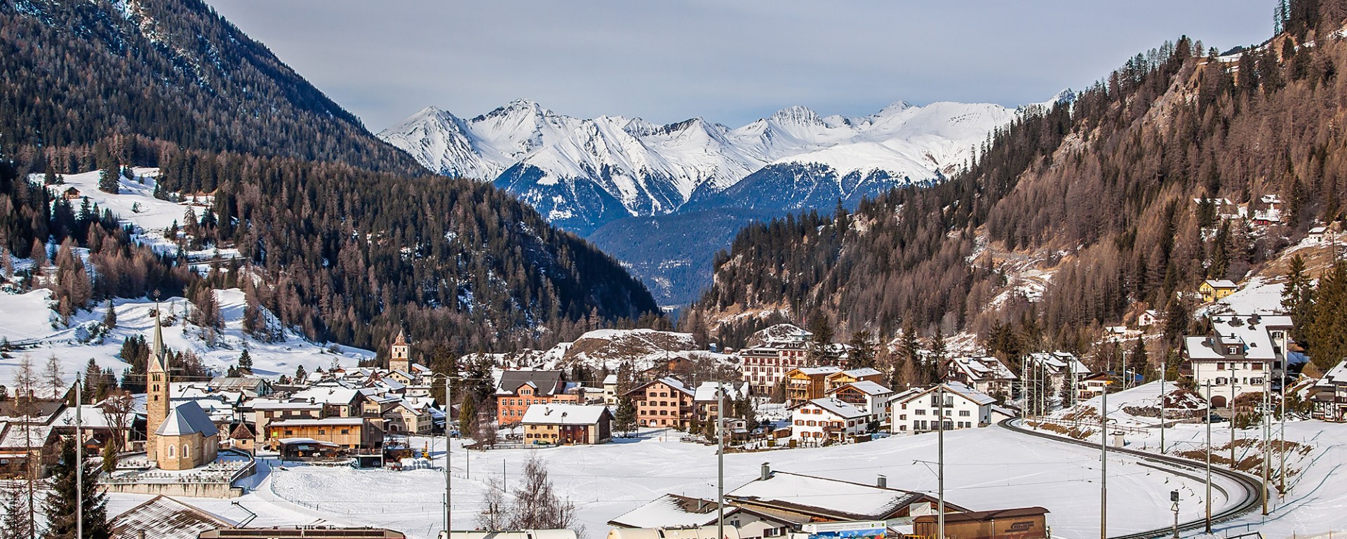 We hadn’t prepared for shooting photos in this region, but in Bergün it all came together. We left the car in town and hiked into the mountains, following the railroad line. South of Bergün the railway line gains height quickly through a series of curves. From our first viewpoint we could see 2 levels – the lower level offered a magnificent view on the little mountain town with the Lenzerhorn and Guggernellgrat in the background.