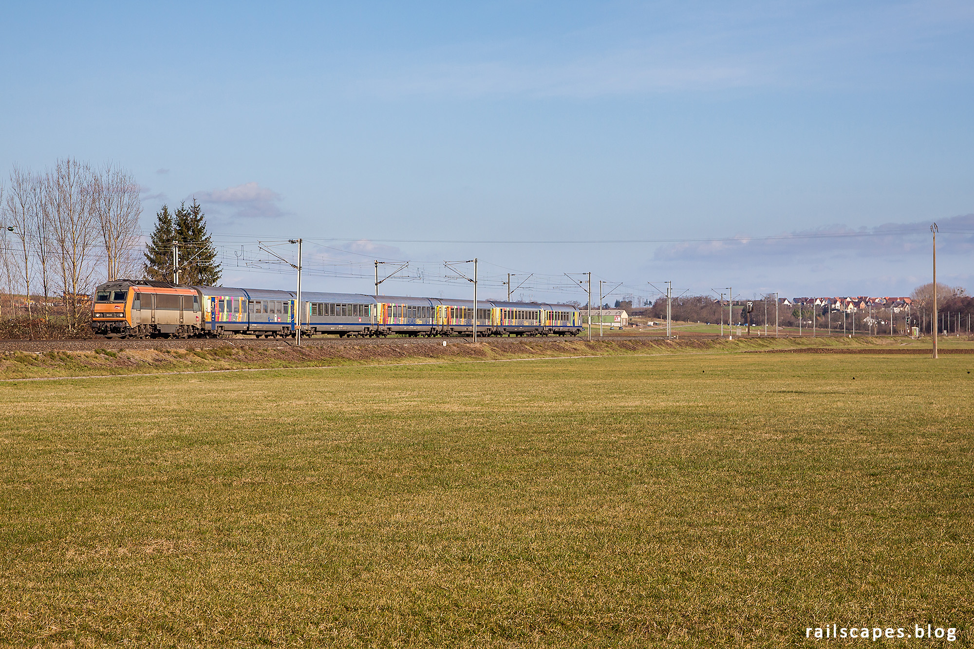 The wide plains north of Strasbourg allow straight tracks and fast trains. Here we see a local train that can ride 200 km/h. I’m sure this local doesn’t stop in every small village though.