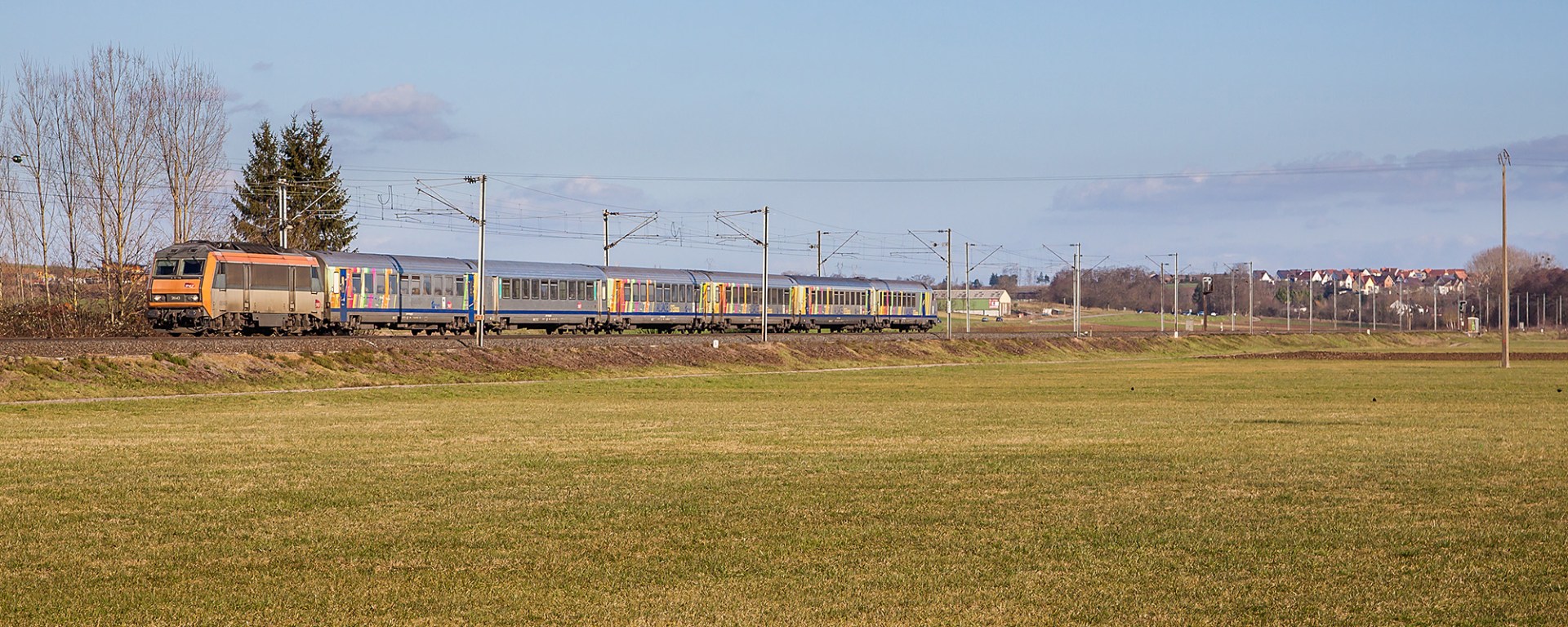 Sybic 26143 with a fast TER service nort of Strasbourg. Schwindratzheim, 29.1.2016