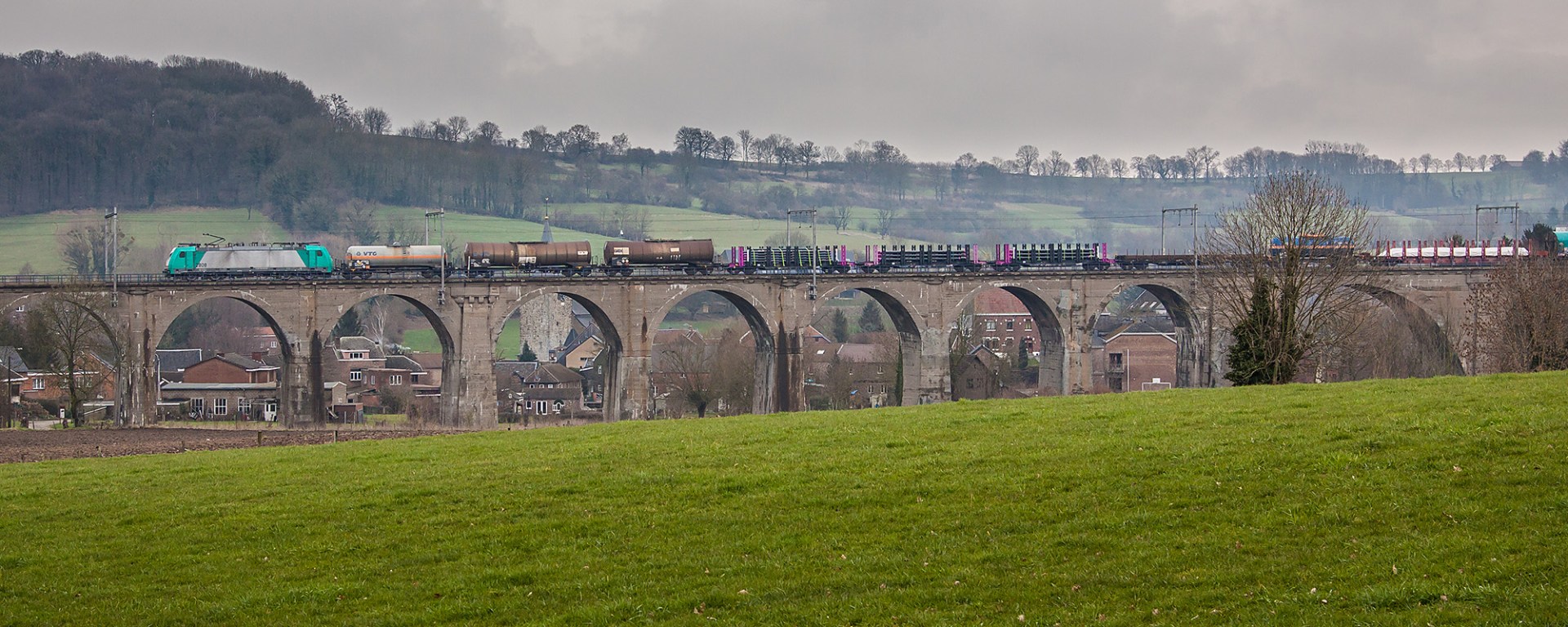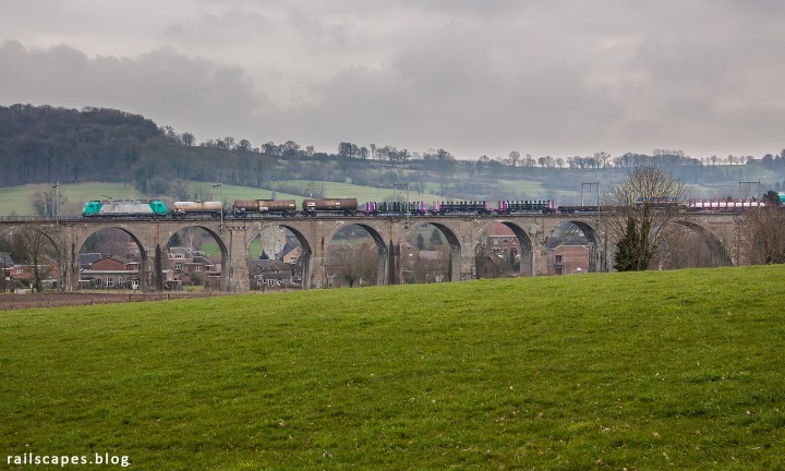 Besides going to Switzerland with my parents as a kid, we also stayed in the Voeren region during summer vacation. It were fun vacations, and I also have great memories of the trains crawling up the hill towards the German border. Around the viaduct of Sint-Martens-Voeren I actually made my first train photos, only featuring now disappeared locomotive classes.I enjoy going back there. The region is splendid and the trains are still fascinating. On the afternoon of Saturday march 5th I hung around the viaduct of Sint-Martens-Voeren to photograph it from a couple of different angles. Things change, but so far this viaduct has remained how I remember it. Mainly massive and consisting of arches.