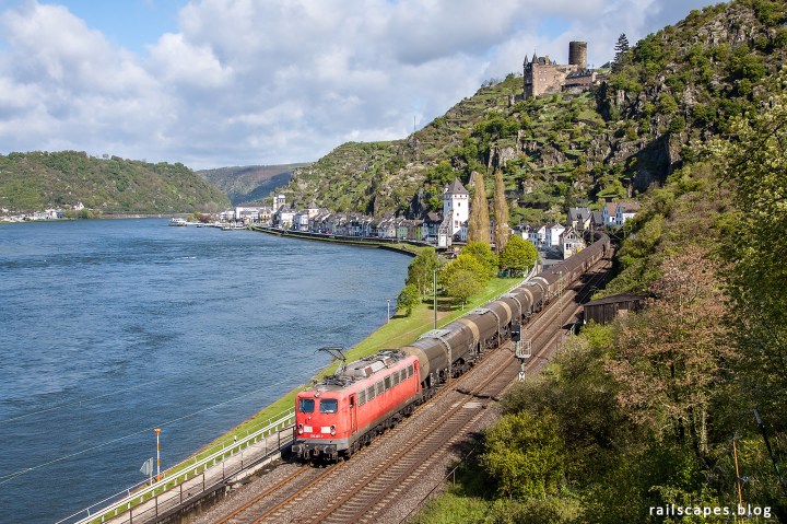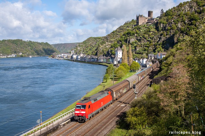 Burg Katz in the background was built in 1393 and is now privately owned. It’s name relates to burg Maus, in Wellmich, that can be seen on this picture.