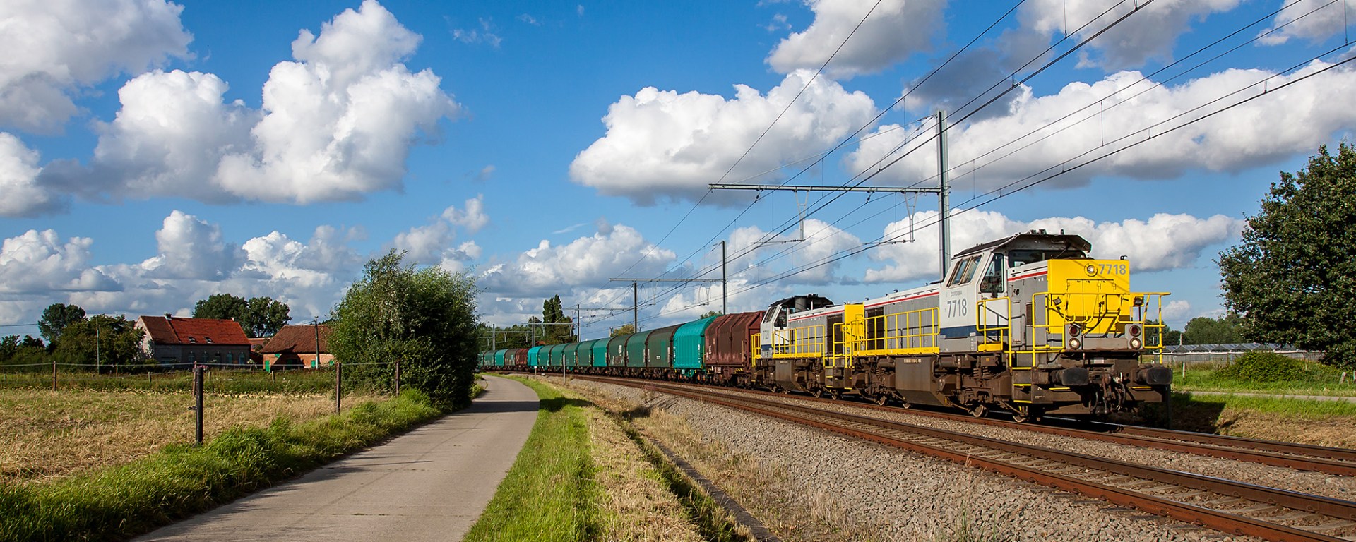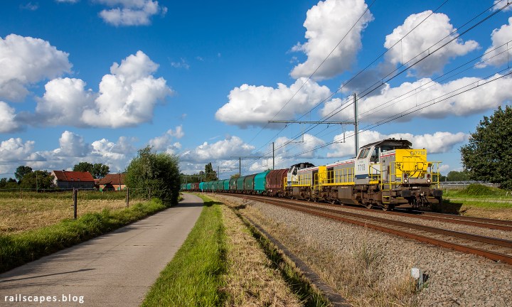 The longer days of the year make after-work photography sessions worthwhile. Typically I visit only one location then, for some oldschool sitting and waiting what comes by. I spent a successfull evening in Beveren on the branch line that comes from the port (left river bank), right before it connects to the main line to Gent. Of the three trains I saw here, I like my photo below here best.