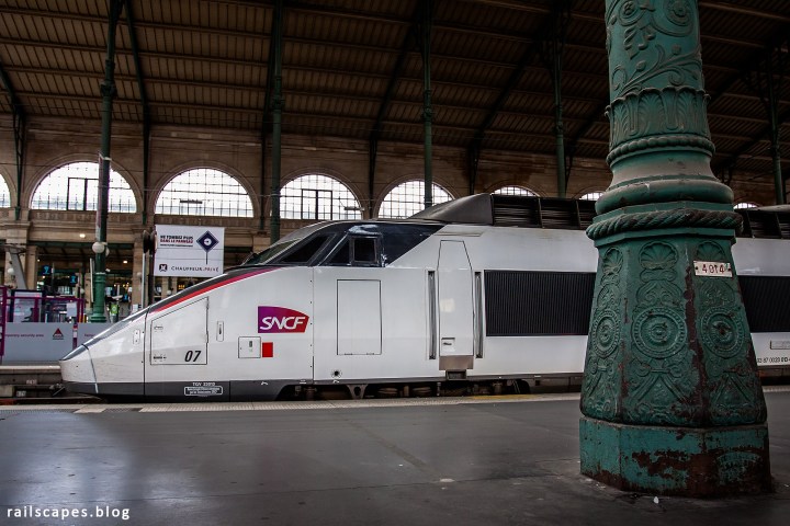 A typical railway scene consisting of lots of different time elements: a 70’s TGV PSE trainset, in a very recent livery, all under the monumental 1864 station hall. The TGV trainset is one of the oldest ones still running around – but for how long will it last?