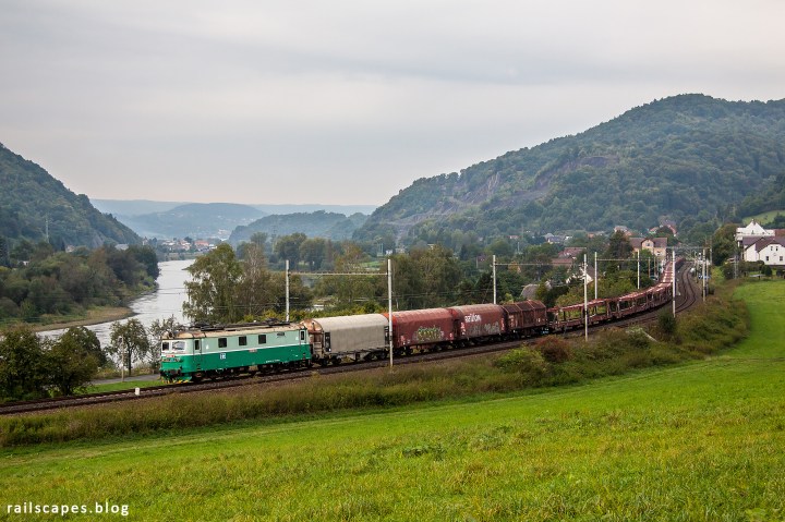 South of Decin, there are railway lines on both sides of the river. I had no idea where to see the trains, but I guessed cargo traffic woud run on the right bank of the river when looking downstream, because Usti nad Labem and Decin’s passenger stations are located on the left bank. I think I may have been right, I heard lots of passenger traffic on the left bank… but there was almost no freight traffic on the right side. THis is the only freight I got here! Next time, I’ll check out the left bank.