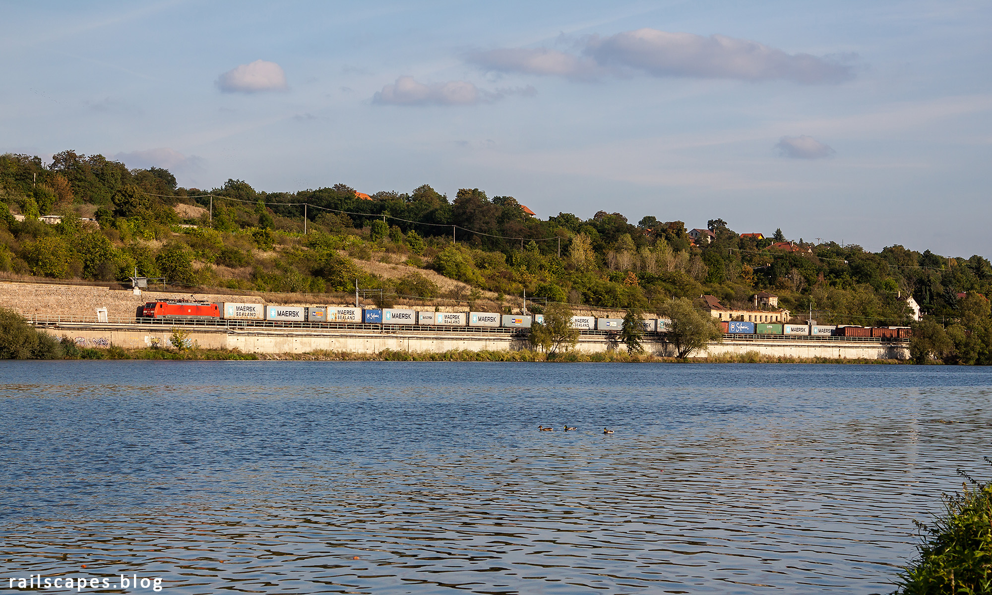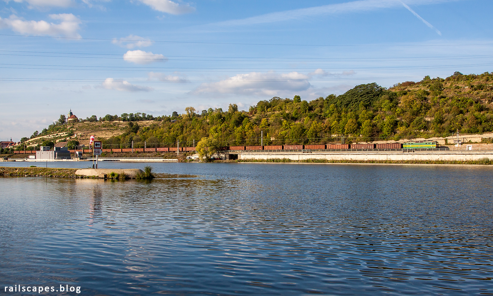 I temporarily ended my journey along the Elbe river at Dolni Berkovice. The railway line runs along the river here, as does a bike lane on the other bank. This makes for comfortable waiting. Add to this that freight trains were numerous, and I could call the evening a success.