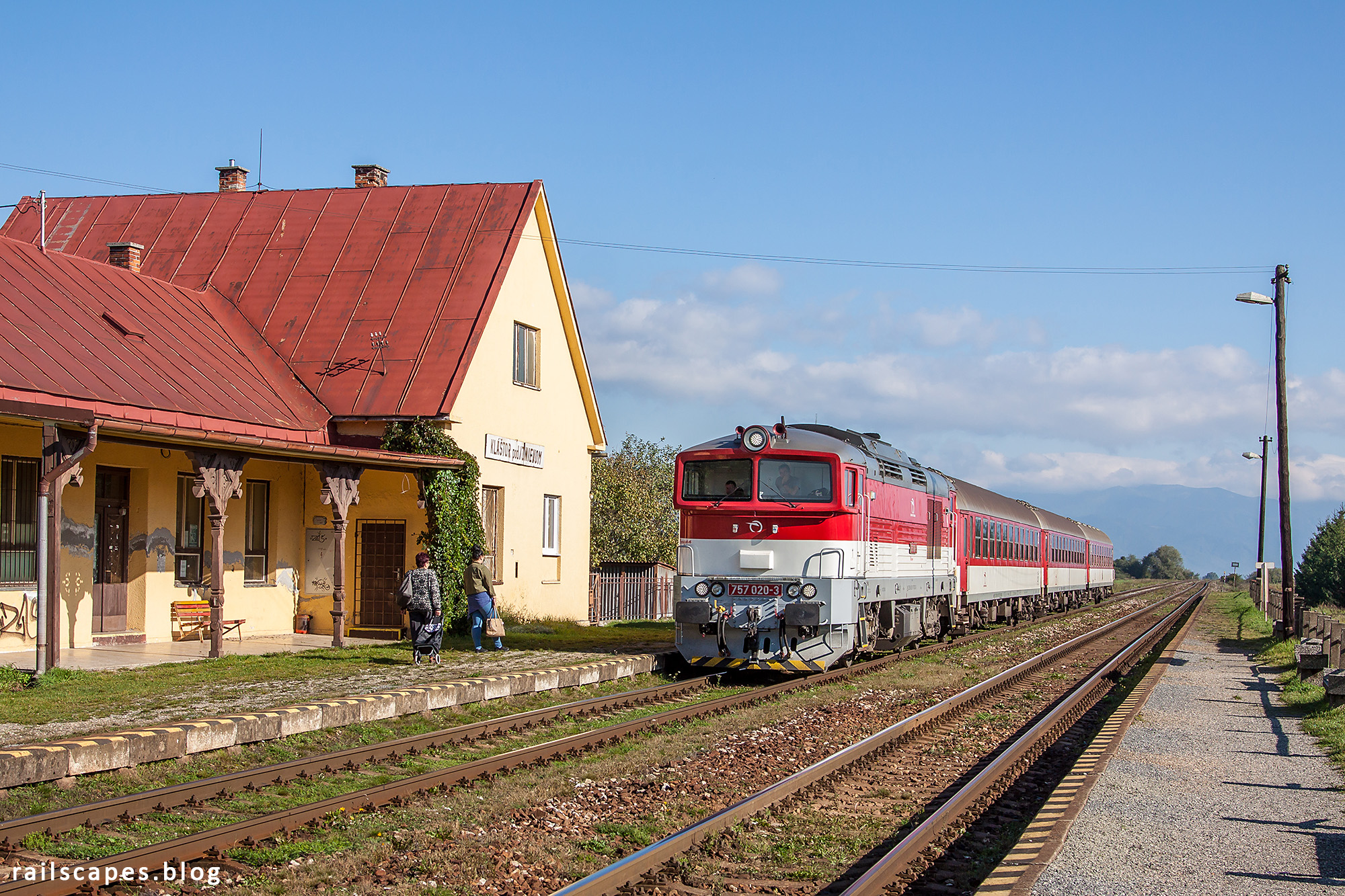 Not knowing what to expect, I just went to the station of Klastor Pod Znievom where I was lucky enough to catch 757 020 hauling a train to Horna Stubna. A very good start of the day!