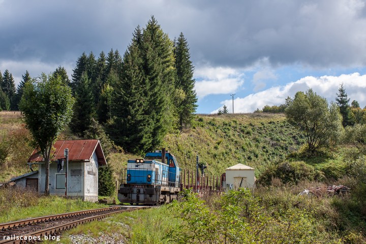 Next up was a cargo train to and from Horna Stubna. We chose the town of Turcek to make the photo’s. The first train was so and so: flat cars, hidden behind a bush… it was more like a bonus though, because the train from Horna Stubna was right on: nicely in the curve, beautiful background, and a nice train consist.