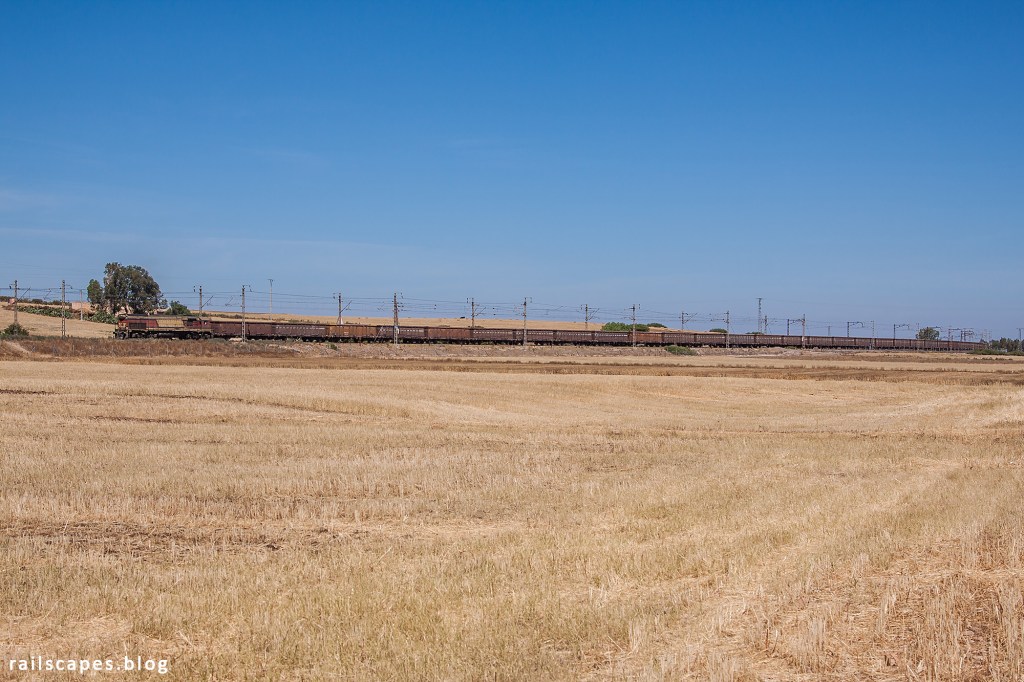 After a good night’s rest, we headed towards the line from Khouribga to Sidi El Aidi. The first train we photographed was a train buit in Belgium, near home. Adventure, yeah right.
