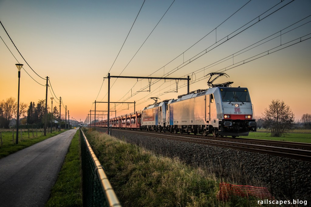This picture wasn’t meant to be made originally. I had made a photo of it at 16:45 in Grammene. With no more cargo trains expected and a family waiting at home, I decided to call it a day. 8 bicycle-kilometers later I found the same train standing still at Deinze station. There might still be a possibility. Thanks to the new bicycle highway between Deinze and home, I could speed up a bit and maybe still find a good spot for a picture. But thanks to that same bicycle highway, most good photo locations have disappeared.