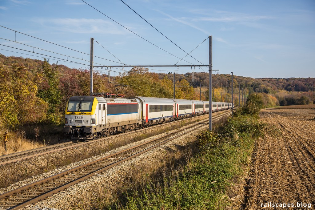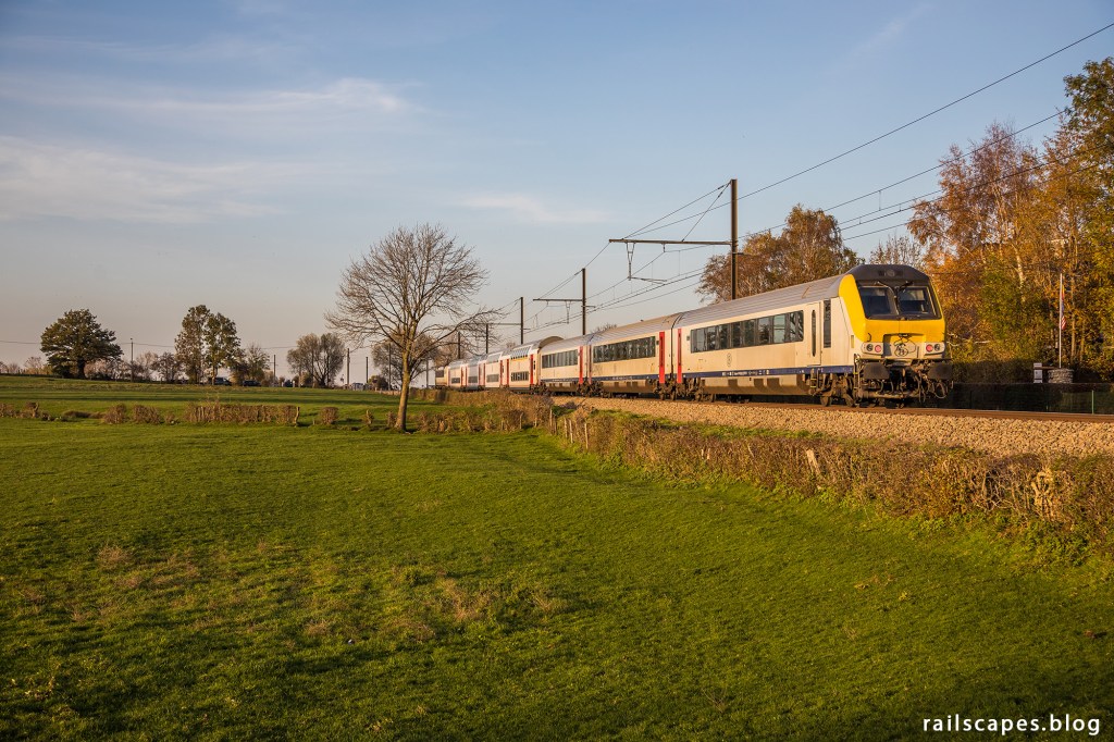It would have been a very good reason – but the beautiful scenery was not the reason why SNCB detoured their Oostende – Eupen intercity trains through Voeren. End of October and beginning of November 2020, the direct railway line between Liège and Welkenraedt was closed for works. An opportunity for the passengers to discover some different than usual scenery. For rail enthousiasts, it was an opportunity to see loco-hauled passenger trains on a freight-only railway line.