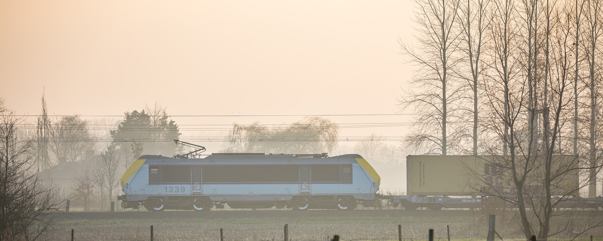 Today, the main access to shunting yard of Antwerpen-Noord was not accessible, resulting in massive detours of freight traffic. The portion of line 50 between Gent and Schellebelle was, for one day, the busiest part of railway on the network. Only by evening the sun was breaking through the clouds, right on time for this warm winter shot of a southbound train.