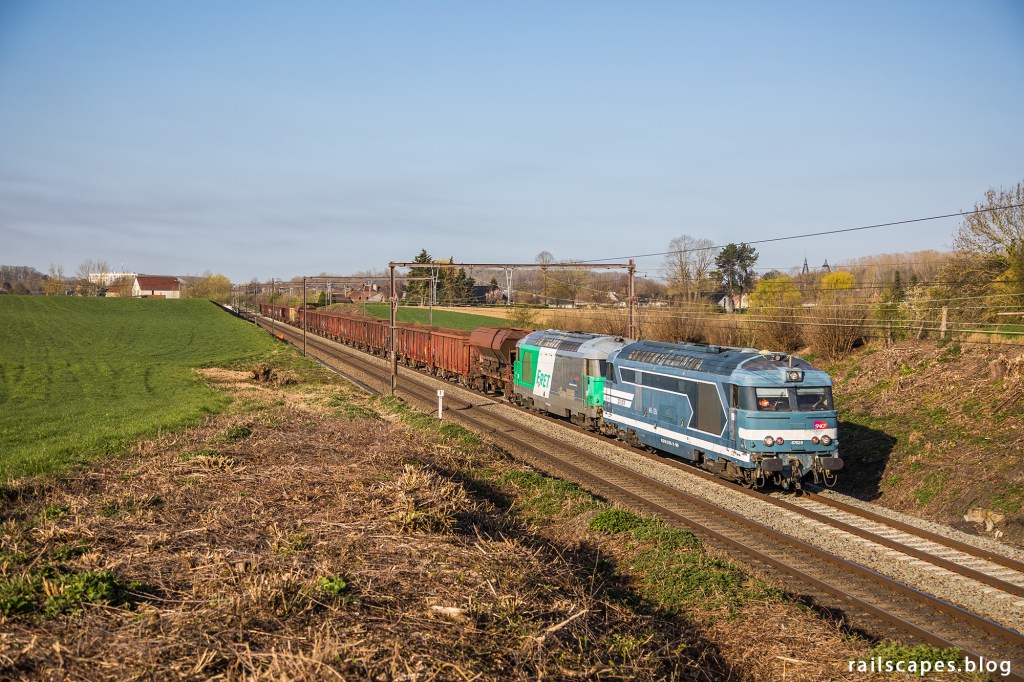 Interesting as they may be, I wasn’t in Quenast only to make photos of SNCF logos. The ballast train that SNCF hauls to Quenast for a refill is quite nice to see, and not only for the traction used.