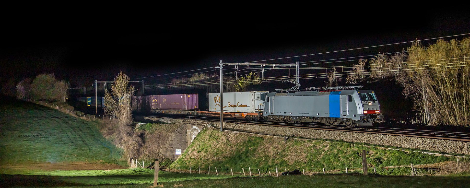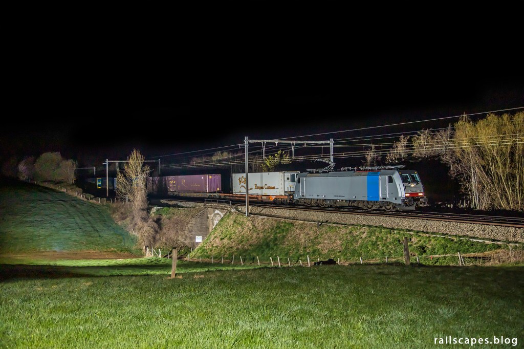 Just an hour before curfew, we see Crossrail’s 186 496 conquering the steep slope towards Montzen. It’s hauling intermodal train 43511 from the port of Zeebrugge towards Basel.