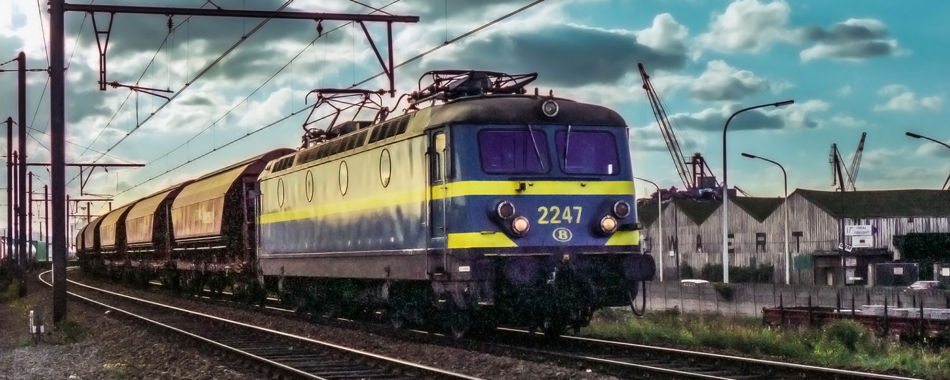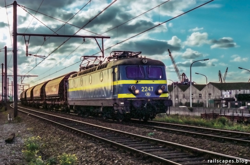 The pictured train is running north on line 26A, between the Schaarbeek shunting yard and the docks of the port of Brussels. I think it comes from Quévy and is heading to Antwerp.