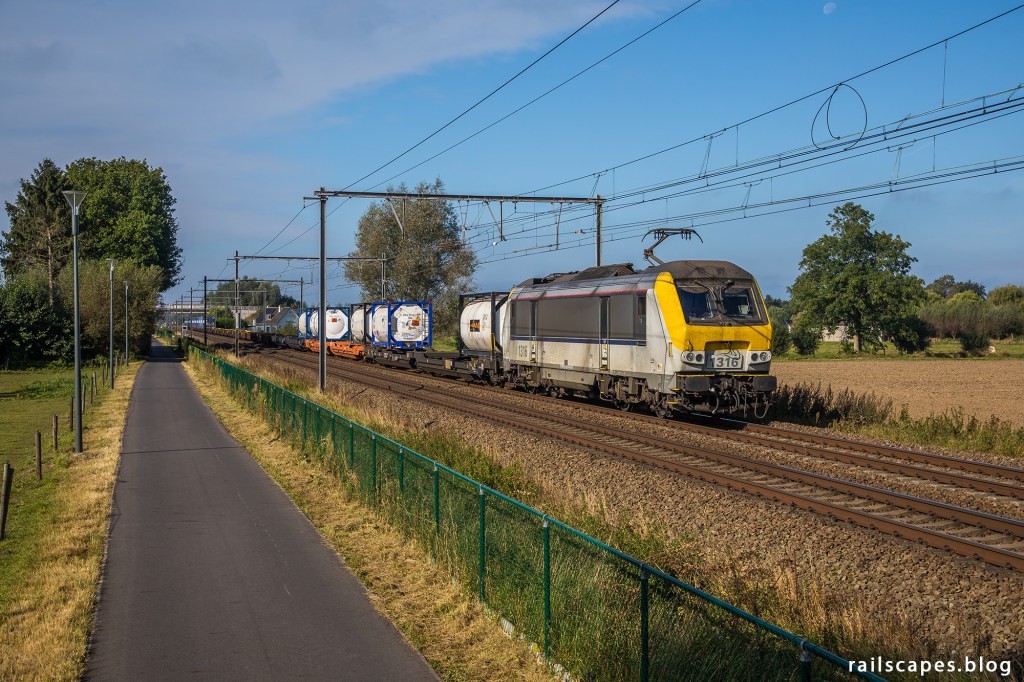 Train traffic to the port of Zeebruges was rerouted over Deinze and Lichtervelde again, tripling the amount of freight trains on these lines. Indeed, 3 out of the 4 trains pictured below normally take the direct line between Ghent and Bruges.