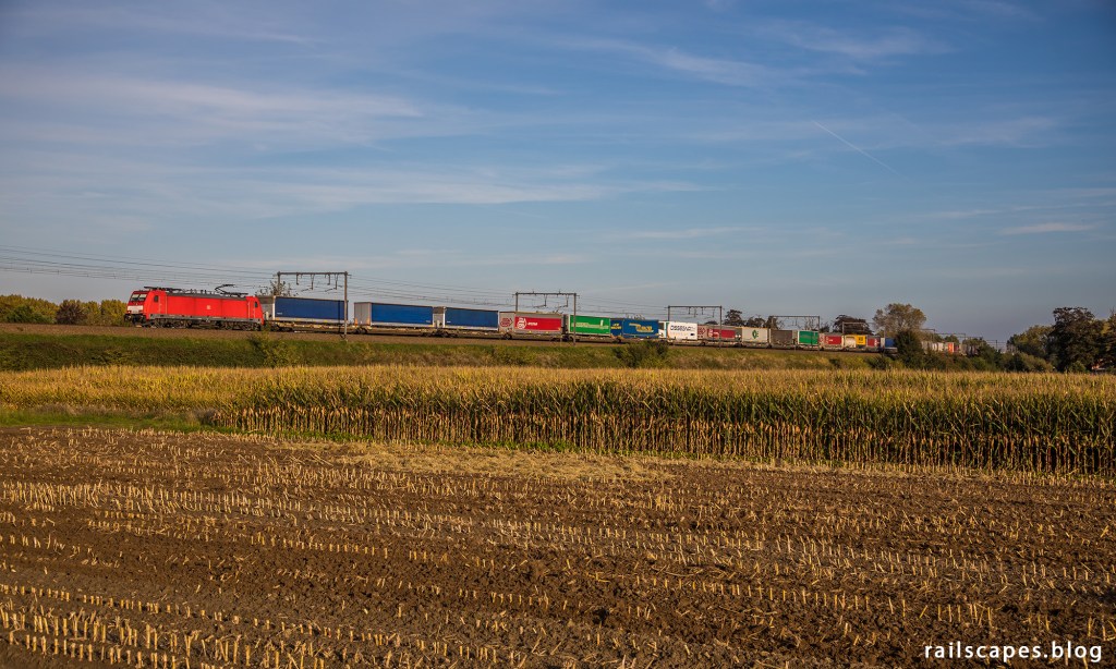 DB’s 186 338 had the honour to haul colorful train 65900 from Montzen to Zeebrugge.