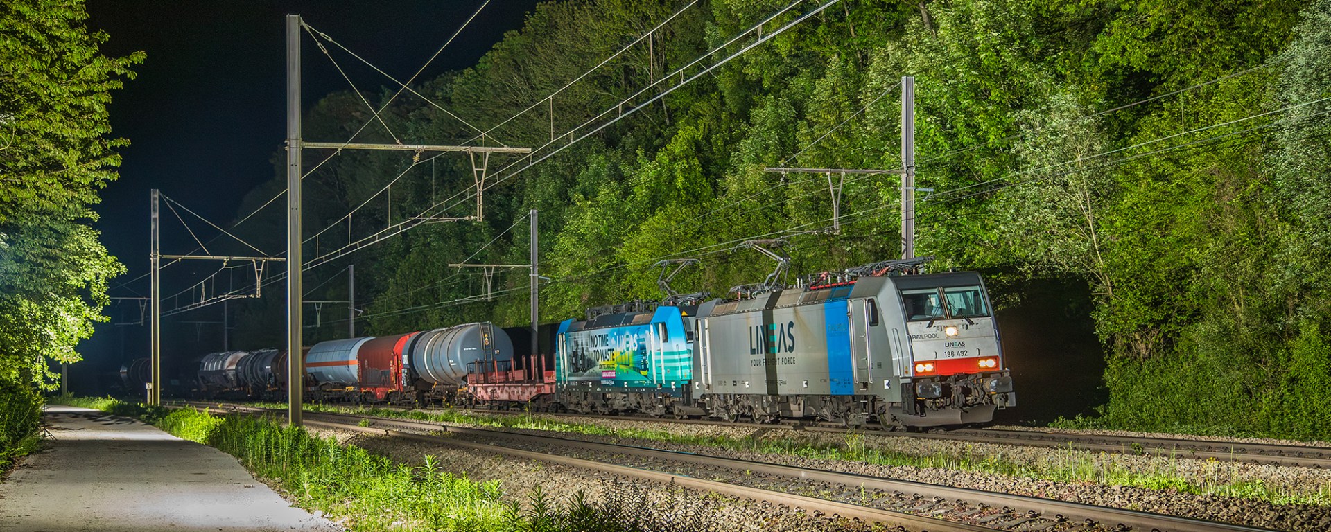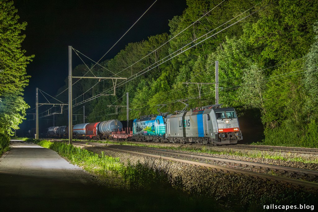 We spent a recent family weekend in the border region near Montzen. On two occasions I got out to make a few photos in Remersdaal: once during daytime, once during nighttime. Both times I got a mixed freight train from Antwerp to Köln headed by a double Traxx engine. And that’s where the similarities between the two photos end. 4 different liveries, 2 operators and a totally different atmosphere. Not sure which one I prefer, I enjoyed the “making of” of both as much.