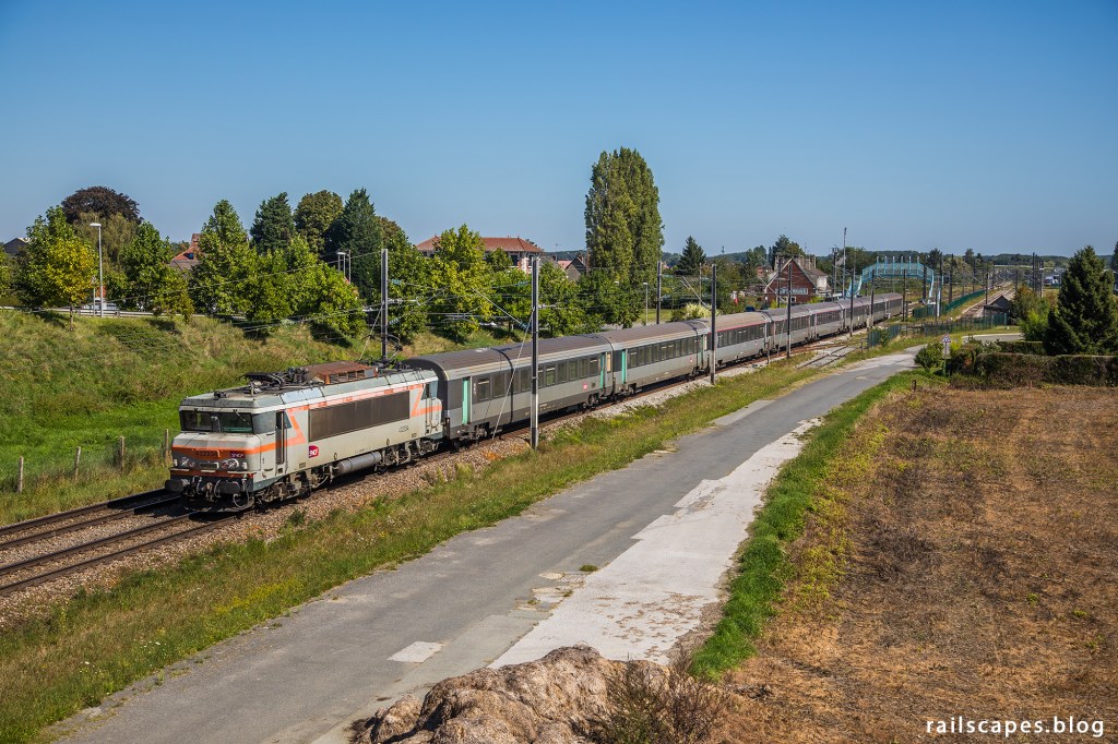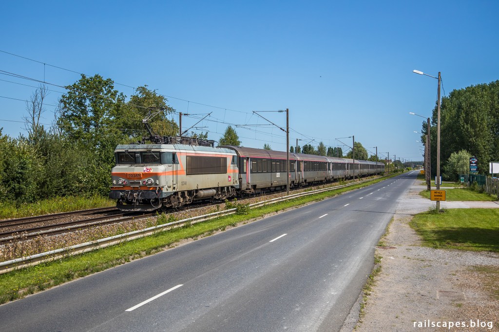 Earlier attempts to shoot the famous French nez cassé locomotives on the IC trains between Paris and Maubeuge were rather frustrating, partly due to the very sparse number of trains. That is, until we discovered that there were also loco-hauled trains running between Paris and Saint-Quentin. It turns out you can fill quite a day south of Saint-Quentin chasing these trains, which my friend Eurorailer and I have done a few times last summer.