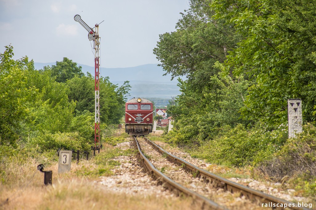 The first train we captured was train 16104 from Dobrinishte to Septemvri. The chase downhill started in Dolene and ended in Varvara.