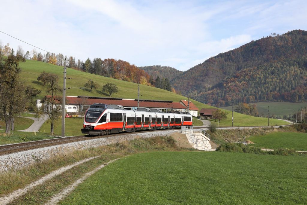 Standing in the Pyhrn valley with a warm jacket on, I’m looking at the surrounding mountains with their trees in autumn foliage.