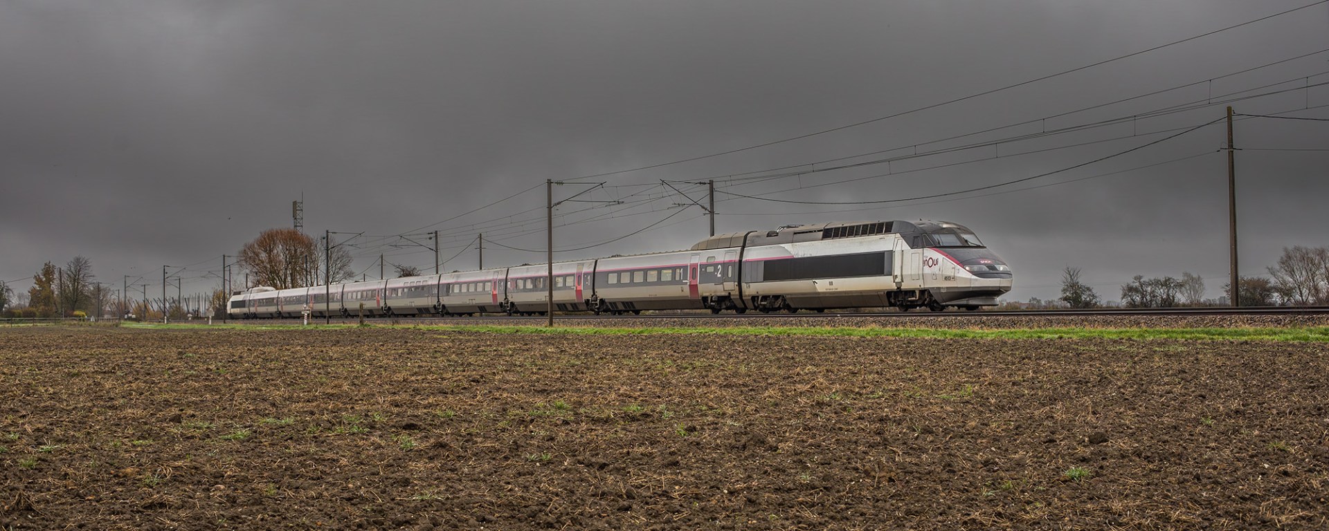 It was raining quite hard a few minutes before this photo came to be. The air was fresh and clean as I caught this TGV train on chip, the sky not convinced yet that the rainshowers are over.
