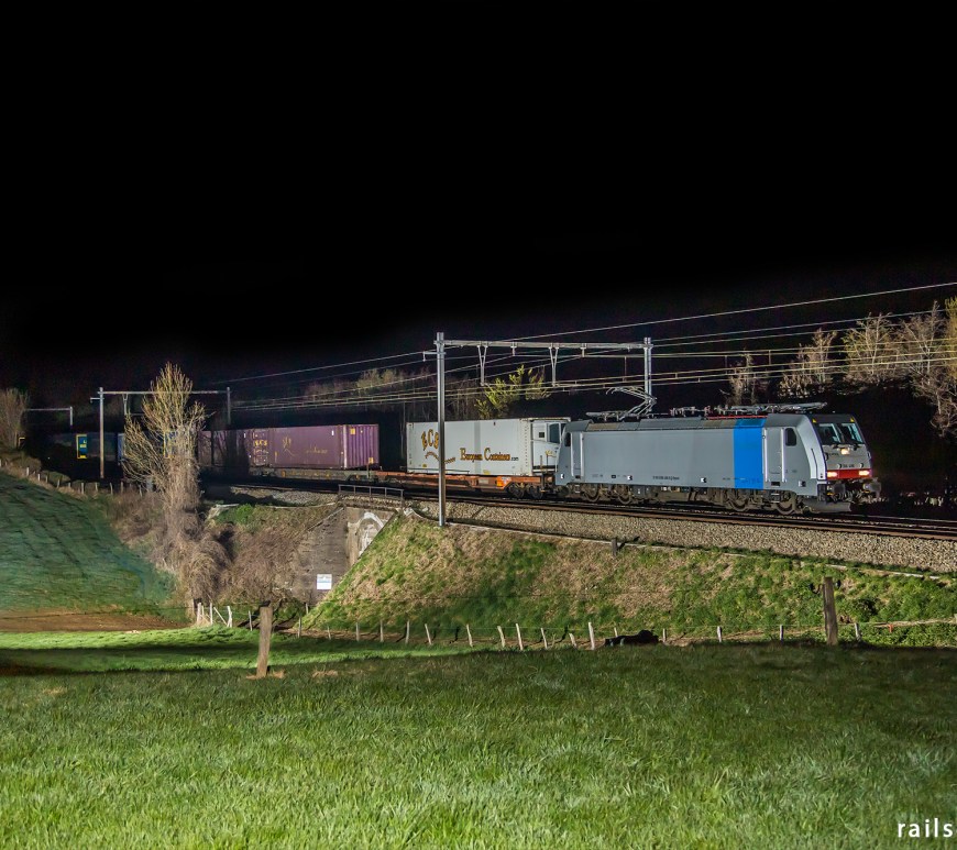 It was a cold cold evening, yesterday. During the waiting, I could see the grass slowly turn white. By the time the two freight trains had passed, my tripods were covered with a thin frosted layer.The first train, hauled by a Traxx locomotive, looks like a train from Antwerp to Dourges. The second one is the most intriguing though. Description of the load was “big … Continue reading Frosty white containers