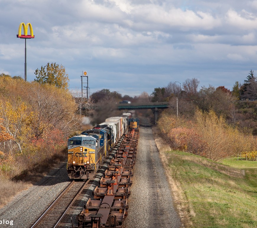 The railway line running along lake Erie seems busy. I convinced my girlfriend for a short break along the tracks, and immediately saw headlights in the distance. A few seconds later a long doublestack container train rumbled over the 7-track railway crossing. In the background a Nestlé Purina plant, with the old Ralston Purina logo. Continue reading Animal feed