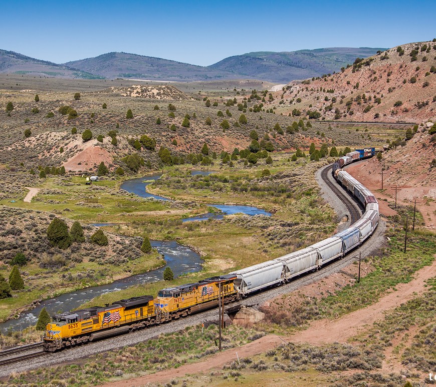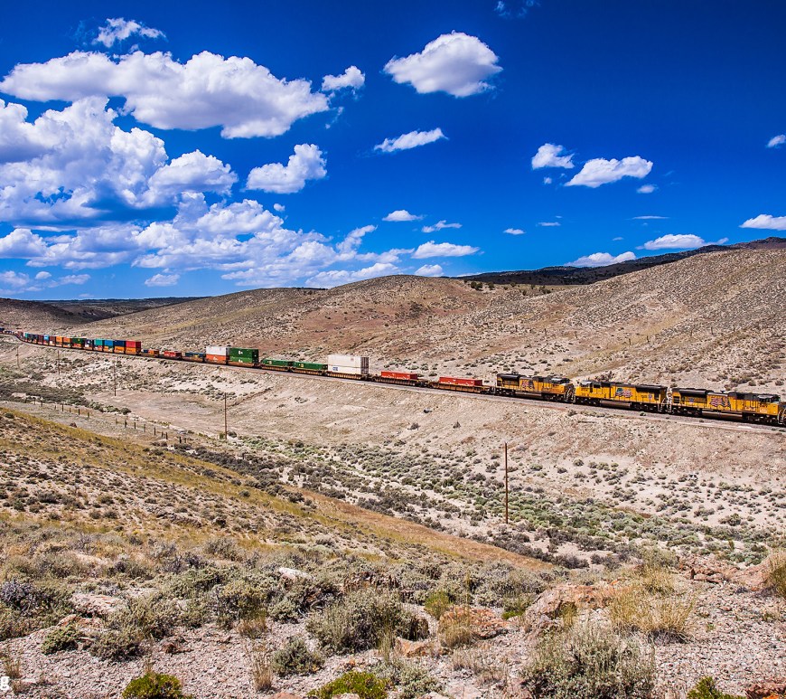 Through the dry landscapes of northern Nevada, another doublestacker is on its way to Ogden over the Overland route. Continue reading Containers over land