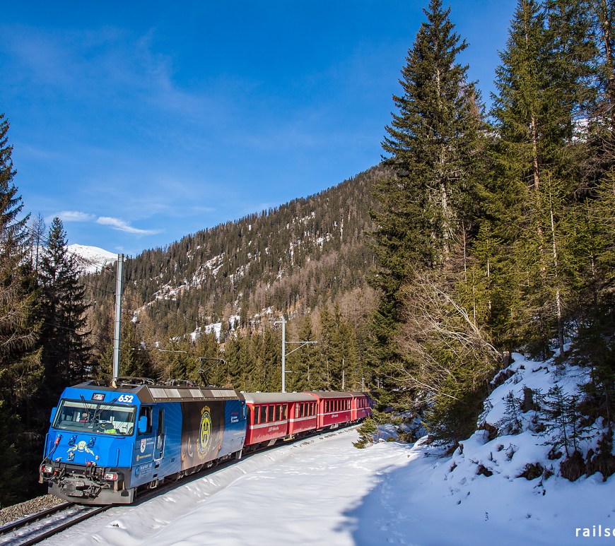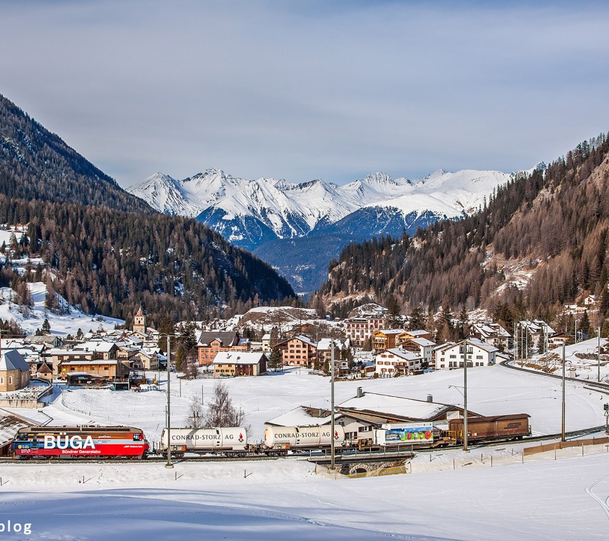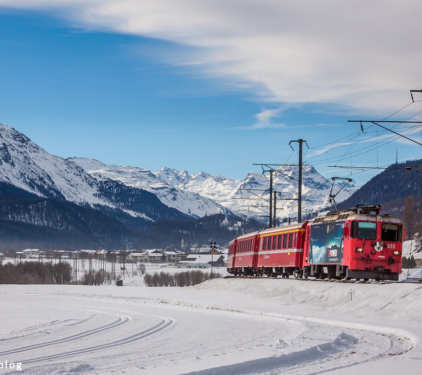 An impressive train, consisting of 12 coaches and led by a heavy duty Ge 6/6 II engine has just left the station of Bever. The powerful engine is justified by the climb up the Albula pass – between Bever and St. Moritz the trains run run in a relatively flat valley. The backdrop is what makes the view. Flat valley and beautiful surroundings are probably … Continue reading Flat valley