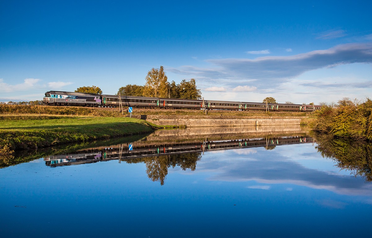 72179 is crossing the viaduct of Besnard with it’s intercités to Paris. Longueville, 25.10.2015.