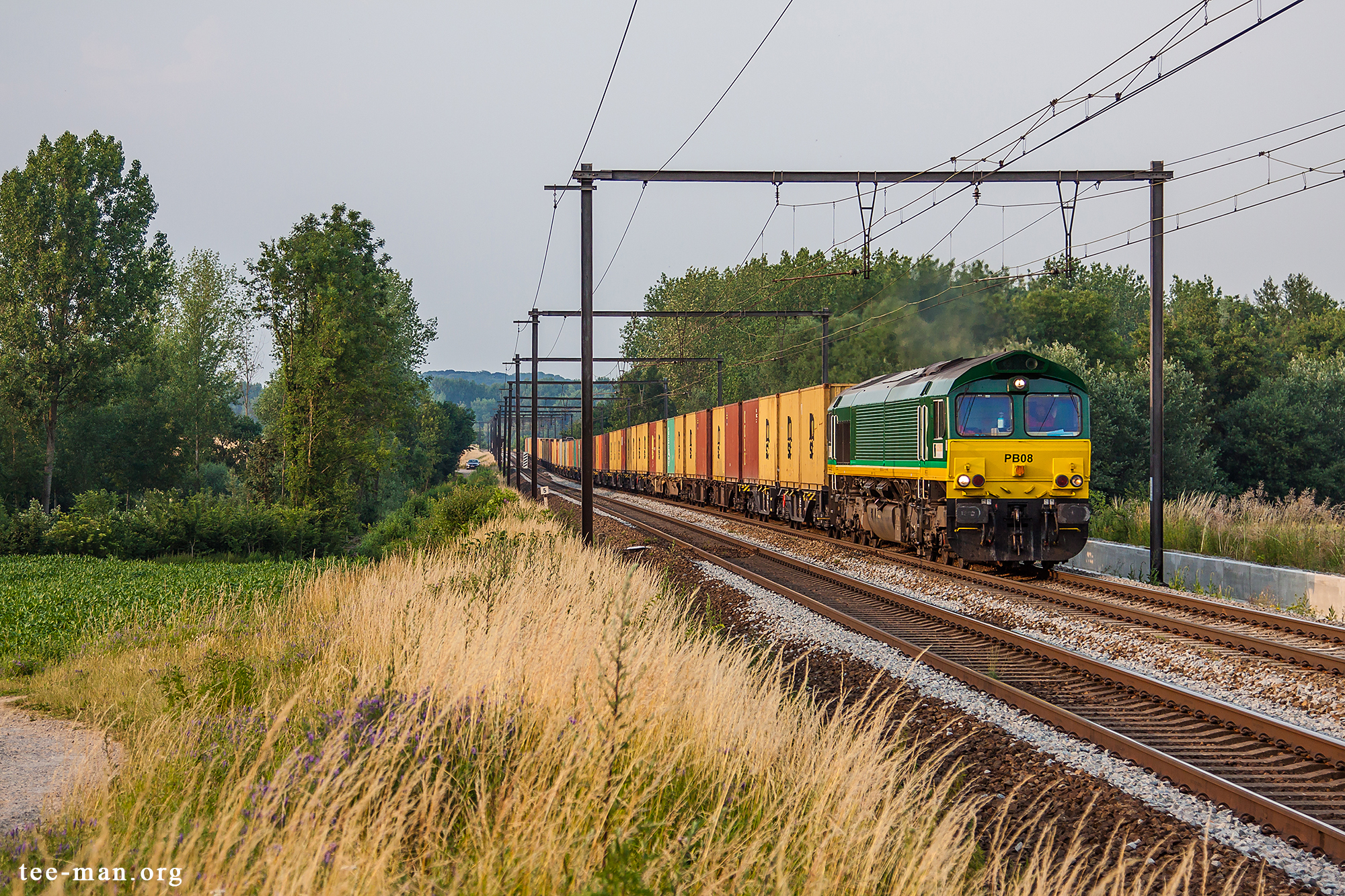 Working full time and making photos of trains during daytime are most compatible during the summer months. I try to plan a couple of days that I can leave work a bit earlier than usual to hit the road. To maximize the time outside, I keep the distances limited. On July 2nd of 2015, I spent an evening along line 24. The evening started in Hoeselt, on the part of the line where cargo’s run in between the passenger trains. The latter were numerous, and I was happy to get this steel train connecting Châtelet with Genk-Zuid.