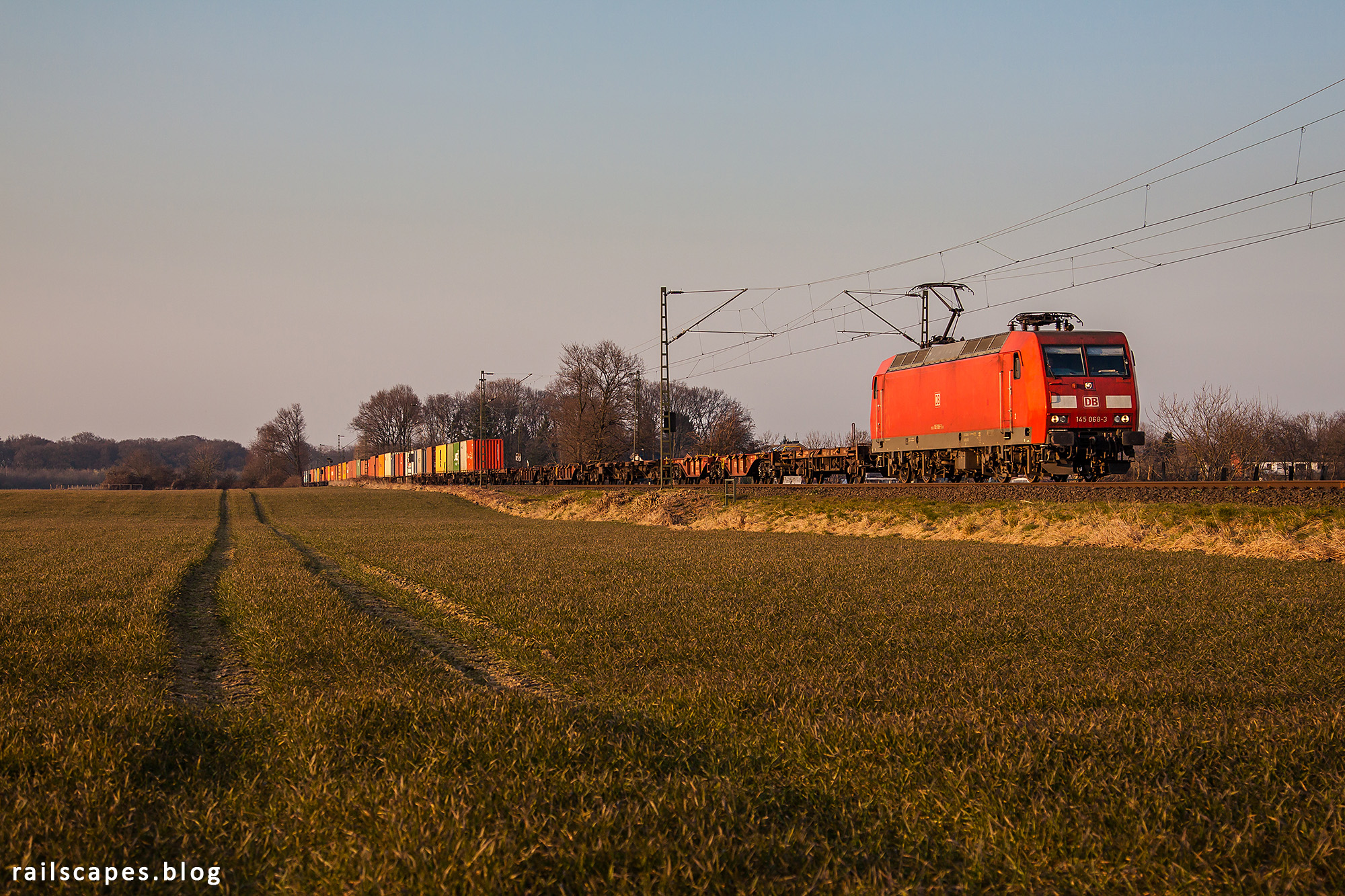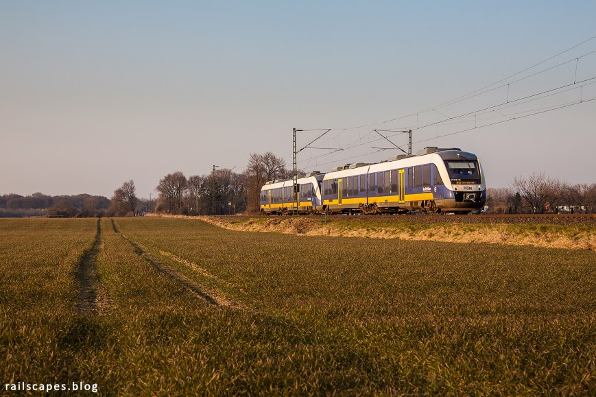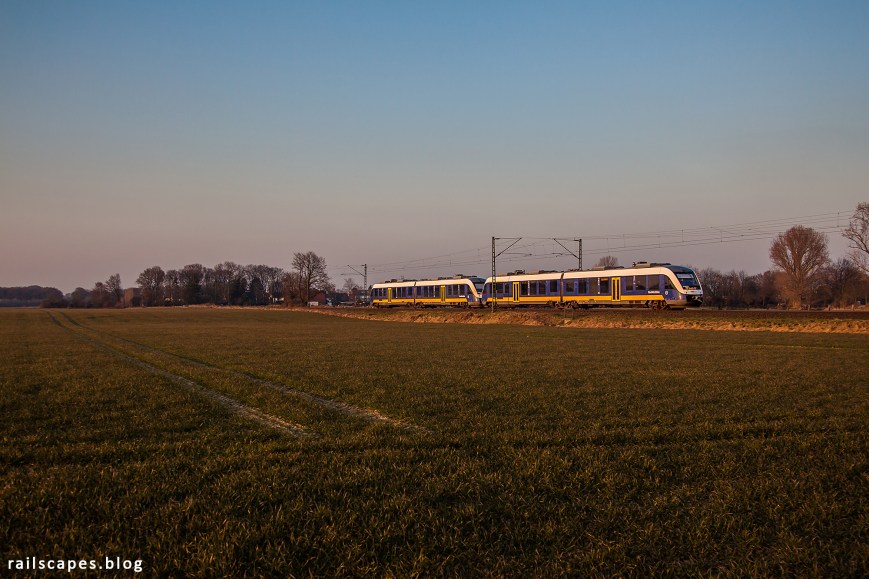 We saw more NordWestBahn Lint41 motorcars, a Talent 2 electric unit operated by National Express, and one freight train. Someone forgot to put containers on the first half of the train 🙂