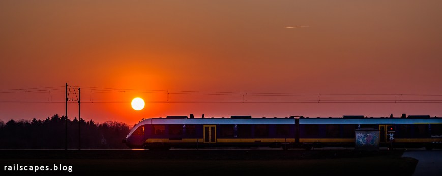 It was a beautiful spring evening that I wanted to enjoy until the end, before the 2 hour drive back home. So I watched the sun set, the occasional passing train covering it. A quiet, enjoyable moment to finish an intensive day full of discoveries.