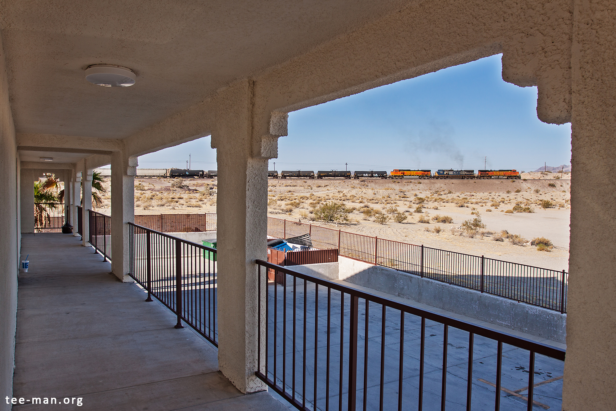 Without knowing it, we chose a greatly located motel the night before. At the Best Western Colorado River Inn you wake up with the sound of train horns, and with a view on the railroad from the balcony. Half awake you can make your first photo of the day. The delicious breakfast at the Juicy River Cafe nextdoor gave us enough energy to last through the day.